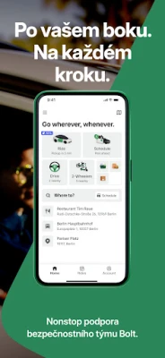 Kvalita je naší prioritou, což dokazuje průměrná doba příjezdu vozů pouhé tři minuty a vynikající hodnocení řidičů 4,7 z 5 hvězdiček. Každý partnerský řidič Bolt je ověřen a připraven zajistit vaši bezpečnou cestu. Pro vaši ještě větší pohodu nabízíme pokročilé bezpečnostní prvky, jako je SOS tlačítko pro rychlé sdílení polohy v nouzi nebo možnost nahrát zvuk z jízdy pro zvýšenou jistotu. Spojujeme miliony lidí ve více než 600 městech napříč 50 zeměmi a čtyřmi kontinenty, a s hrdostí deklarujeme, že všechny emise CO2 z vašich cest jsou plně kompenzovány, čímž podporujeme čistější životní prostředí.